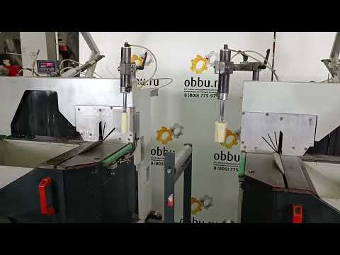 Скорость вращения пилы 2800 об / мин. Дисковая пила может разрезать заготовки минимальной длиной 335 мм и максимальной длиной 4500 мм. Станок имеет две режущие головки (два отрезных диска), которые одновременно разрезают профиль с двух сторон, что вдвое сокращает время обработки. Кроме того, двойная торцовочная пила оснащена, среди прочего, подающим устройством и отрезными дисками.