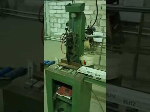 Пневматический стационарный шуруповерт с ручной подачей саморезов для крепления армирования в ПВХ профилях.