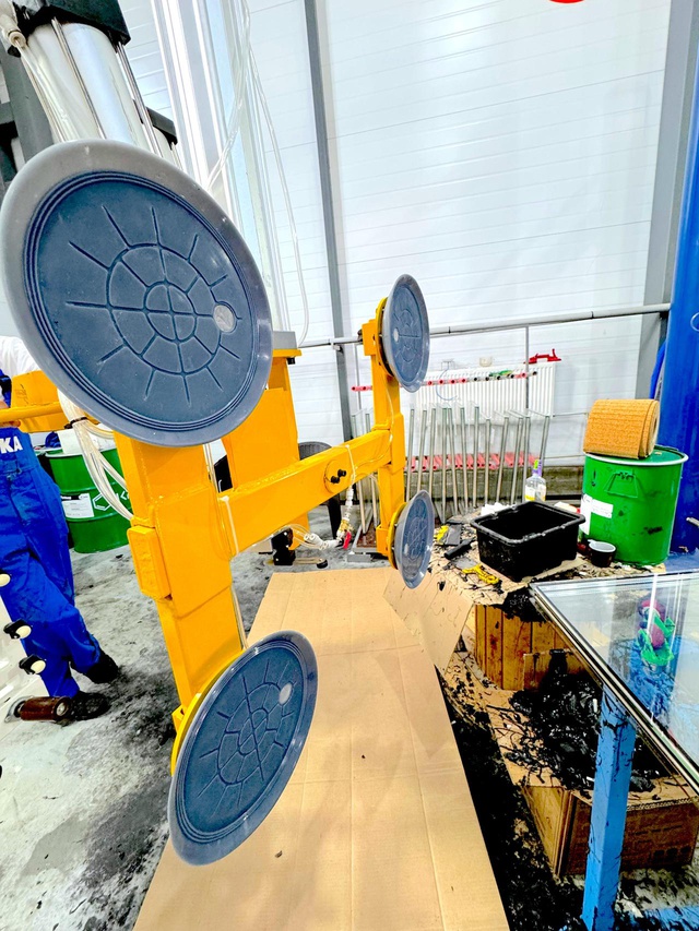 Максимальная грузоподъемность составляет 300 кг., максимальный размер стекла может достигать 8 м (длина) х 4 м (ширина).