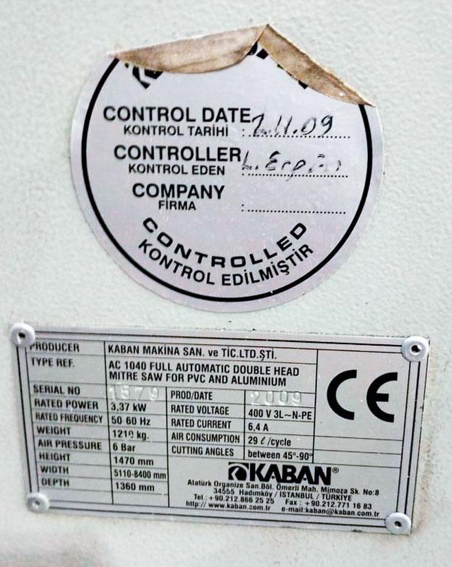 KABAN AC 1040 Автоматический двухголовочный станок для резки профиля из ПВХ и алюминия (Б/У оборудование)