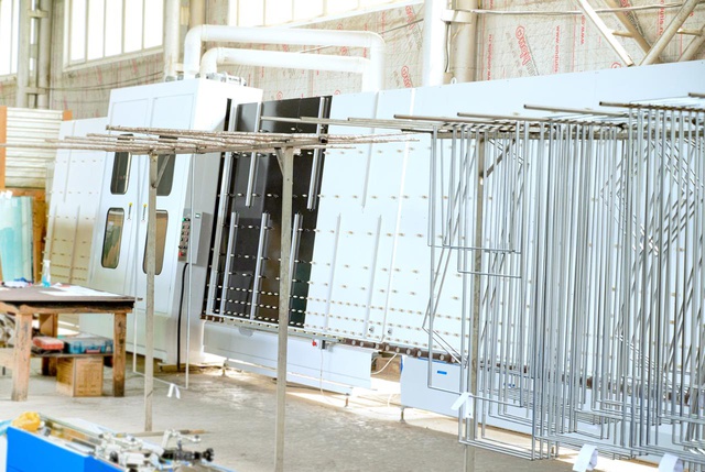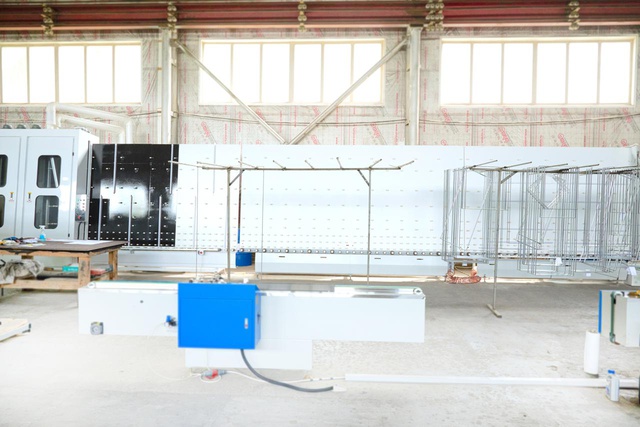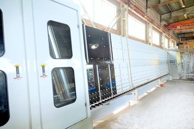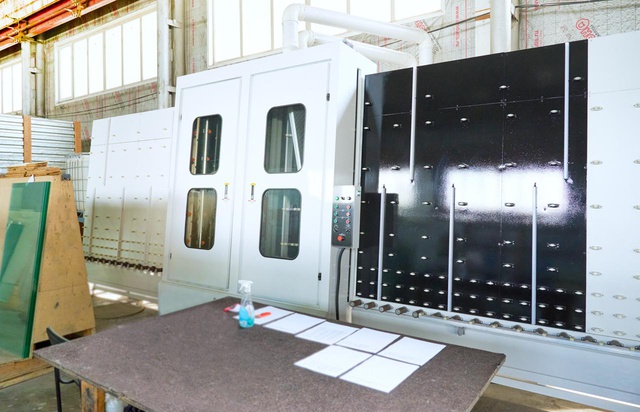 - Модернизированное моечное отделение с закрытым верхом LQ2000. Имеет стеклянные фрагменты дверей для визуального осмотра работы форсунок и фенов. Три пары щёток для мытья стекла с любым напылением. Внутренняя шумоизоляция корпуса. Контроль и регулировка температуры нагрева воды. Два водяных насоса мощностью 1,5 кВт каждый. Единый цепной конвейер секции мойки и сушки стекла встроен в единый алгоритм сборки стеклопакетов.