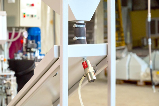 - Для быстроты заполнения оснащена системой вибрации жёлоба. Расход сжатого воздуха – 5 литров в минуту при давление сжатого воздуха 2 Бар.;