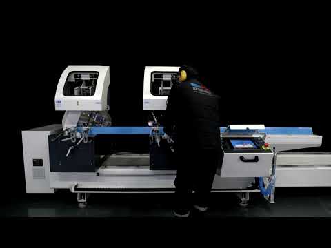 Регулируемая гидропневматическая подача пильных дисков делает движение максимально плавным, скорость выхода режущих пильных дисков можно изменять. Левая голова неподвижна, правая вручную перемещается по линейным подшипникам на заданный на дисплее управления размер. Для резки под углами 90°, 45° и - 45° пилы наклоняются автоматически, а резка на промежуточные углы настраивается вручную. Станок оснащен поддерживающим конвейерным упором справа и разработан согласно правилам СЕ.