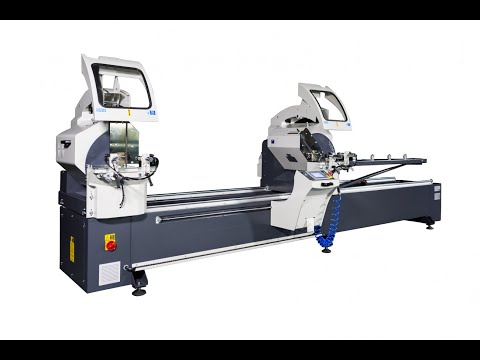 Регулируемая гидропневматическая подача твердосплавных пильных дисков делает движение максимально плавным, скорость выхода режущих пильных дисков можно изменять. Левая голова неподвижна, правая автоматически перемещается по линейным подшипникам на заданный на дисплее управления размер. Данная двухголовая пила производится турецкой фабрикой в двух вариантах: 1. наклон голов внутрь 45° и 90°, 2. наклон голов наружу -45° и 90°. Для резки под углами 90°, 45° и - 45° пилы наклоняются автоматически, а резка на промежуточные углы настраивается вручную. Станок оснащен поддерживающим конвейерным упором справа и разработан согласно правилам СЕ.