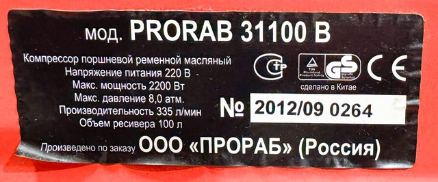 PRORAB 31100 B Компрессор воздушный поршневой 100 л 220 В (Б/У оборудование)