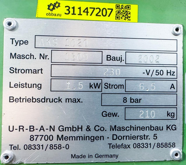 URBAN AKS 1020 Одноголовочная сварочная машина для пластиковых окон (Б/У оборудование)