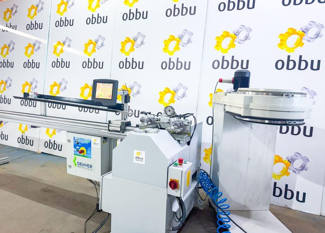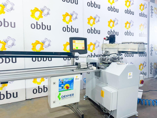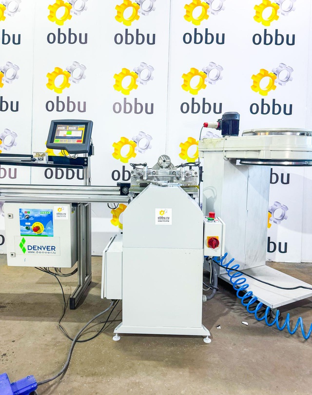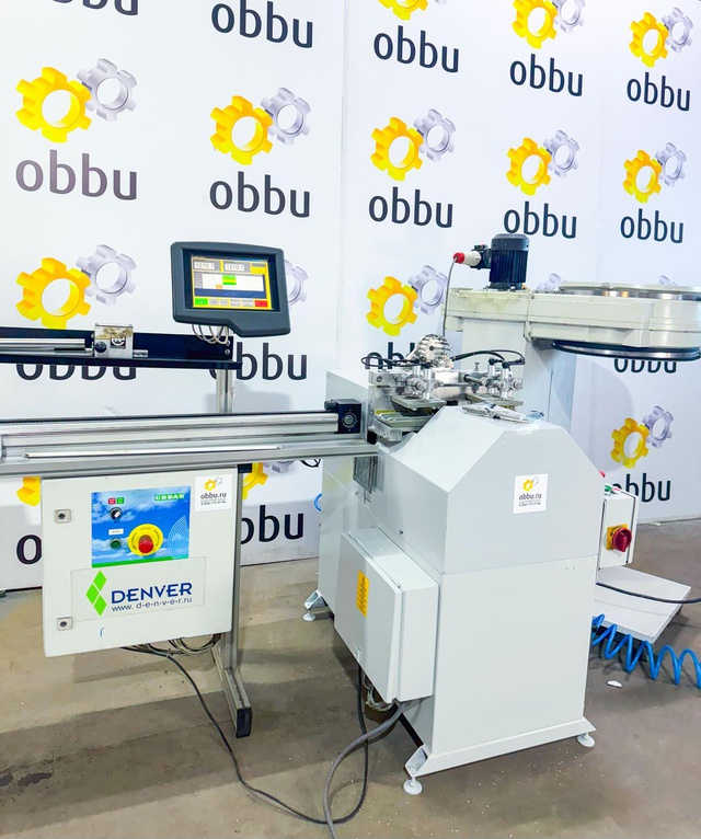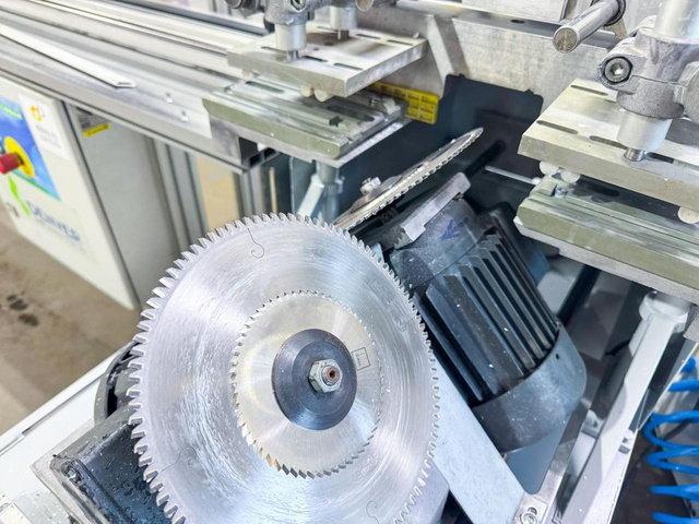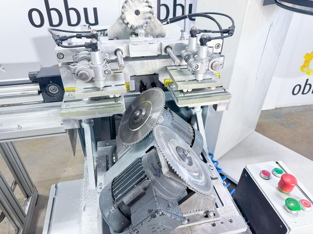 Пила для резки штапиков под углом 45º. Автоматическая подача пильных дисков. Станок оснащен системой имитации прижима штапика к стеклопакету, что позволяет производить точный рез уплотнительной резины.