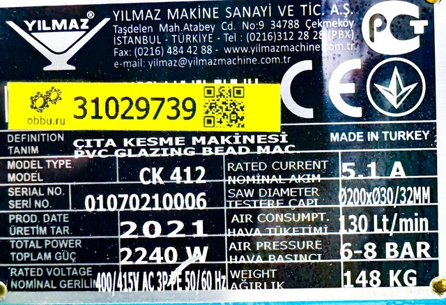 Штапикорез Yilmaz CK 412 предназначен для резки штапика под углом 45º. CK 412 отличается от предыдущей модели CK 411, возможностью полностью исключить покупку дополнительных цулаг под профиль штапика, станок уже укомплектован универсальными цулагами.