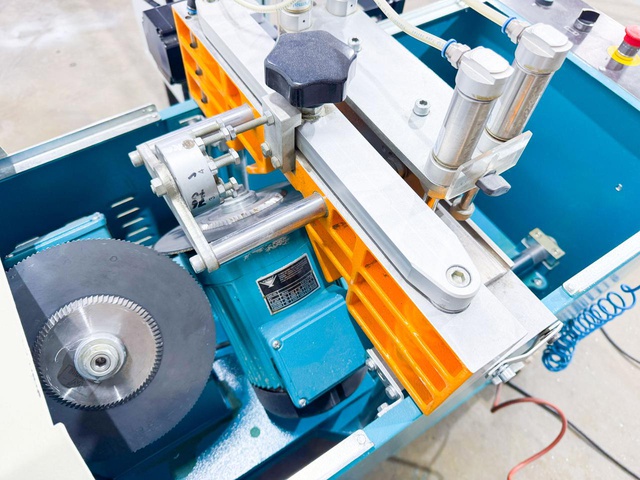 Также станок оснащен револьверной головкой с восемью настраиваемыми упорами для быстрой перенастройки прижима штапика под разный профиль. Четыре пневматических прижима, по два на каждый штапик, позволят плотно зафиксировать профиль. Прижимы и упор профиля, регулируемый револьверной головкой позволяют создать имитацию прижима профиля к стеклопакету в сборной конструкции окна.