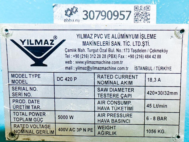 Автоматическая двухголовочная фронтальная пила для пвх профиля Yilmaz DC 420P предназначена для отреза ПВХ и алюминиевых заготовок.